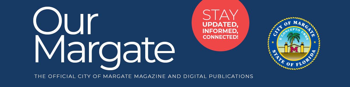 Welcome to Our Margate, the home of the City’s official quarterly magazine and digital newsletter, distributed to all 25,000 households in Margate and over 7,000 online subscribers. The City Manager’s Office produces the magazine and digital contest to increase public outreach and inform our citizens about City news, events, and programs.